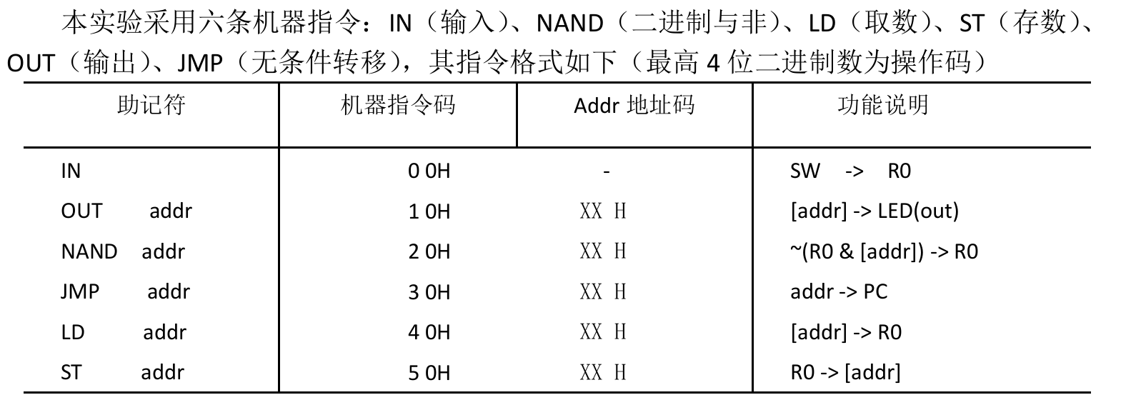 为什么选这几个,因为经过深思熟虑我选的是这几个,上图已经非常详细的解释了这几个的作用,核心指令当然是我们的NAND(这个是一个逻辑万用门,所有的逻辑指令都可以用这个完成),你们做的时候换个其他的,别用这个了,感觉老师应该会记得。