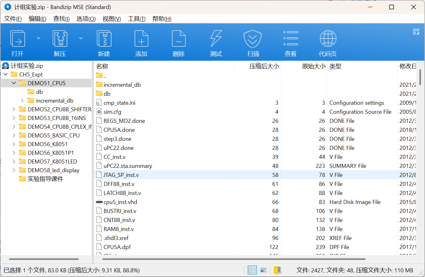 这个课程说实话还是有一些好玩的,它给了你一个CPU的实现(硬件实现和vhdl等),然后给你了一个实验箱,让你自己编一个指令集,并且完成microcode的编写,有几个题目,建议选第一个,因为大家都选的第一个(基本模型机设计与实现),简单易上手(你选其他的到时候出问题了只能找老师了)。