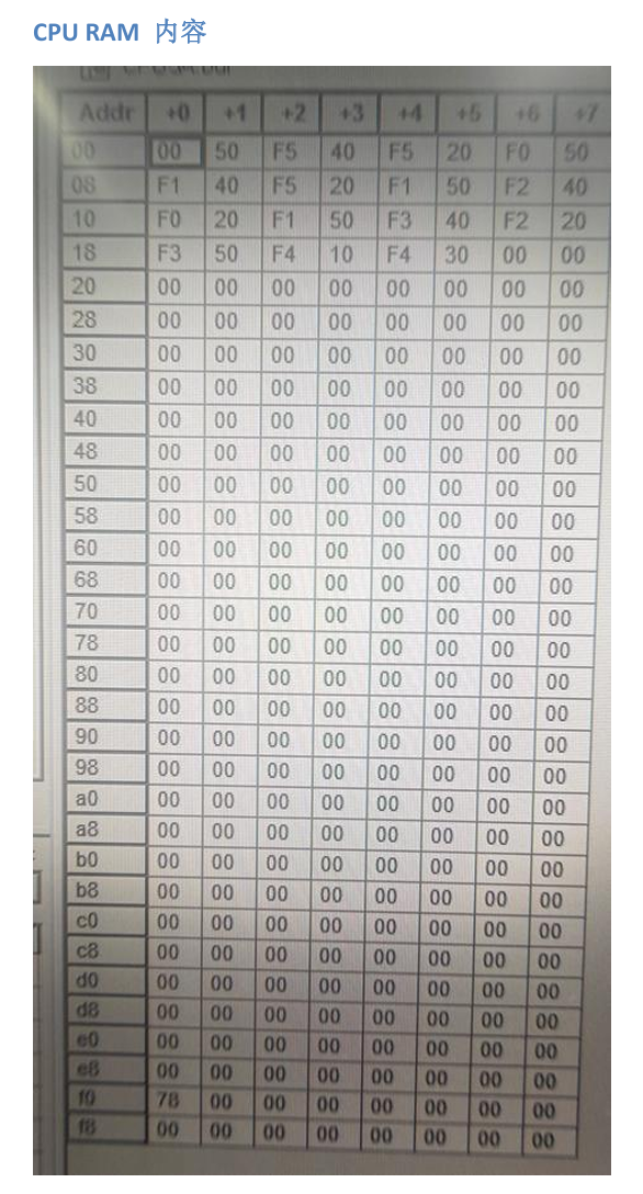 下面我们说RAM中的指令,其实这个你可以设计的很简单,把这几个指令从上到下测试一下就行,最后一个JMP,可以跳回开头。